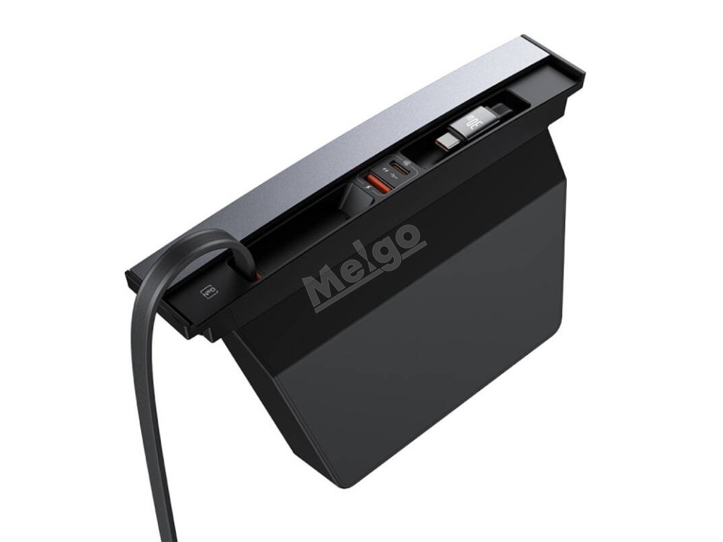 Je také vybaven 2 zatahovacími kabely USB-C, každý o délce 0,8 m, takže je mohou používat i cestující na zadních sedadlech - díky magnetickým konektorům je lze snadno uložit. Porty USB-A a USB-C navíc umožňují připojení dalších zařízení, například sluchátek TWS nebo herního ovladače. Rozbočovač také umožňuje přenos dat (k dispozici pro modely 3 a Y)