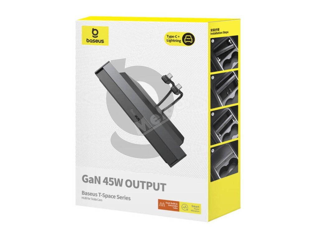 Rozbočovač Baseus je prvním zařízením svého druhu navrženým pro společnost Tesla, které využívá nabíjecí technologii GaN. Díky tomu je nabíjení rychlé a nedochází k přebíjení zařízení. Úroveň výkonu 45 W umožňuje obnovit napájení smartphonu, tabletu nebo notebooku v krátkém čase. Výrobek také podporuje různé protokoly rychlého nabíjení včetně PD3.0, FCP, SCP, QC3.0 a AFC. Poskytuje také ochranu zařízení proti nadproudu, zkratu, přehřátí atd