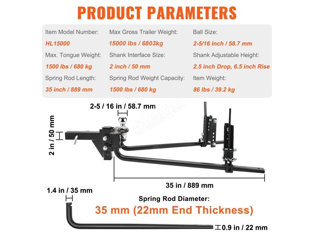 | Délka pružinové tyče | 35 palců / 889 mm |