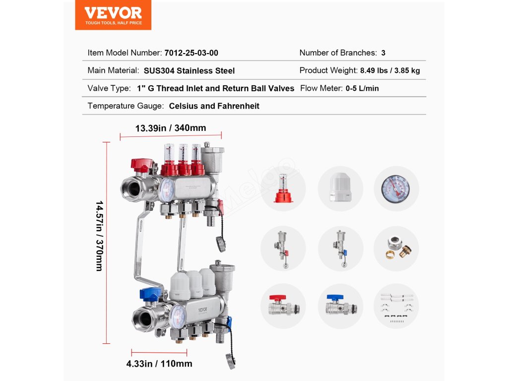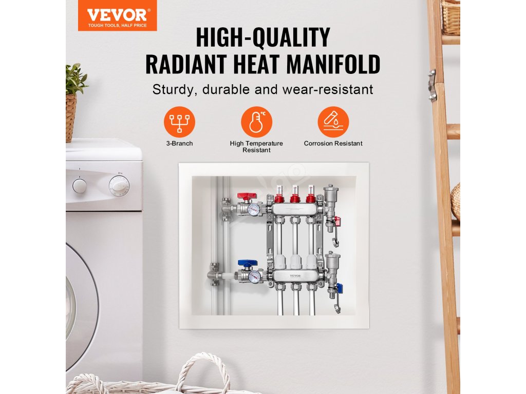 Zvolte si třívětvový sálavý rozdělovač tepla VEVOR pro rychlé a spolehlivé vytápění. S průtokem až 5 l/min poskytuje rychlé a rovnoměrné teplo v celém prostoru. Konstrukce z nerezové oceli SUS304 nabízí výjimečnou odolnost vůči vysokým teplotám a korozi, což zajišťuje dlouhodobý výkon.