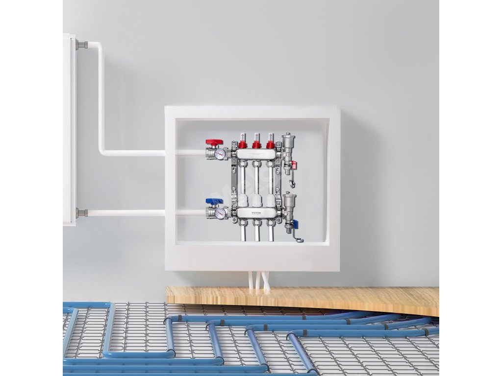 Sada rozdělovače sálavého podlahového vytápění pex je dodávána s kompletní sadou příslušenství a uživatelsky přívětivým designem, včetně montážních konzol a jednoduchých pokynů pro bezproblémové nastavení. Snadno ji nainstalujete podle srozumitelného návodu, aniž byste potřebovali odbornou pomoc.