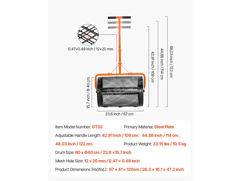 Naše 24palcové rozmetadlo kompostu kombinuje efektivní rozmetání, menší rozměry, delší životnost, velkou kapacitu a rychlou montáž. Ať už jste začátečník, nebo zkušený zahrádkář, jistě si oblíbíte snadné použití pro zelenější trávníky, živější zahrady a úrodnější pole.