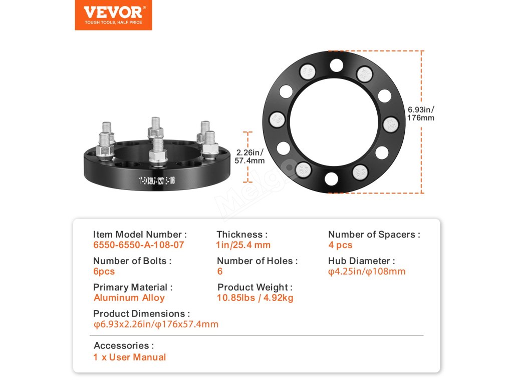 Rozpěry kol 1" 6×5.5" 6-otvorové středové m12×1.5 108 mm 4 ks