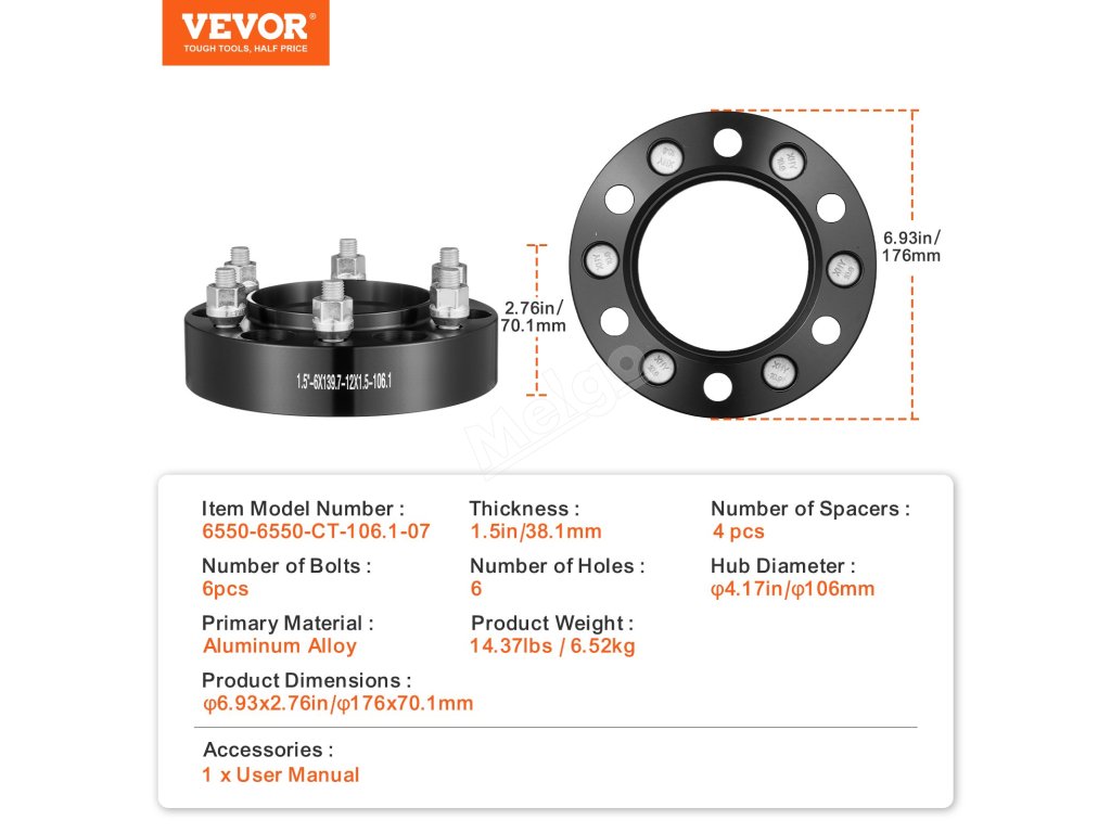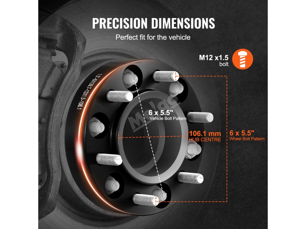 Rozpěry kol 1.5" 6×5.5" 6 děr 106.1 mm M12×1.5 4 ks černé