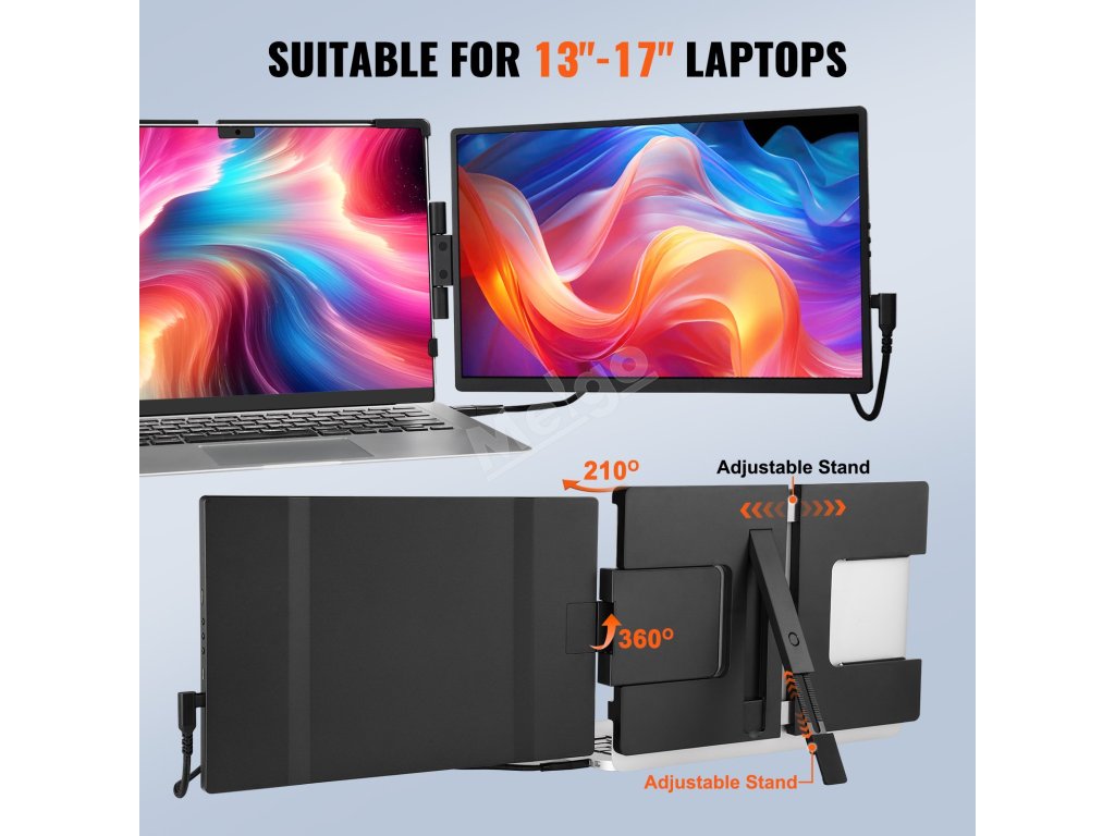 Tento nástavec obrazovky lze připojit přímo k notebookům pro použití na více obrazovkách s možností otáčení o 210°. Podle potřeby jej můžete umístit na levou nebo pravou stranu, takže je ideální pro videokonference, kancelářské prezentace nebo cestování.