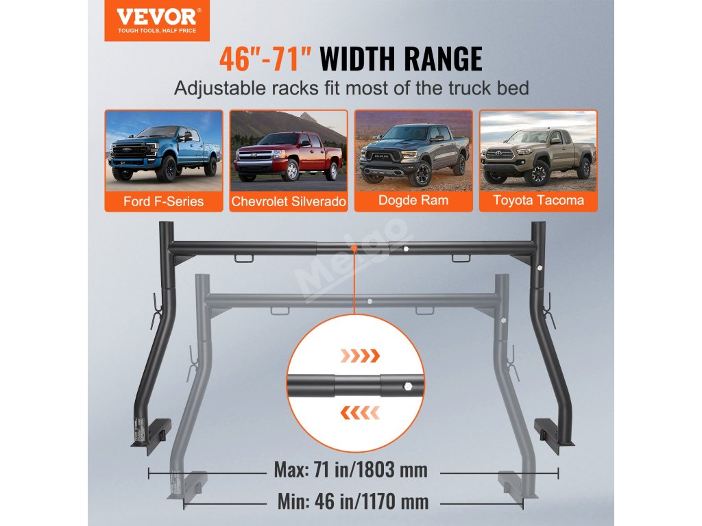 Toto je skvelá vlastnosť rebríkového nosiča VEVOR pre nákladné vozidlá. Má nastaviteľnú konštrukciu. Ľahko sa tak zmestíte na lôžka nákladných vozidiel so šírkou až 71 palcov. Vďaka tejto flexibilite je kompatibilný s mnohými modelmi nákladných vozidiel. Vďaka nastaviteľnej výške a šírke získate presne to, čo sa hodí pre vaše vozidlo. Tieto funkcie vám umožňujú bezpečne prepravovať rôzne predmety. Tento nosič sa dokáže prispôsobiť bez ohľadu na to, či máte veľkú alebo malú posteľ nákladného vozidla. Naša výsuvná konštrukcia vám zaručí maximálne využitie nákladného priestoru vášho nákladného vozidla. Je to teda neuveriteľne všestranná a praktická voľba pre každého majiteľa nákladného vozidla.