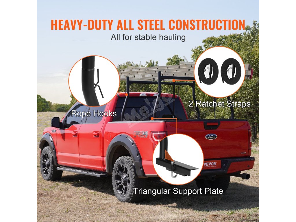 Rebríkový nosič VEVOR pre nákladné vozidlá je skonštruovaný tak, aby vydržal. Je vyrobený z pevnej legovanej ocele. Tento materiál dokáže uniesť zaťaženie až do 800 libier. Či už prevážate ťažké rebríky alebo rezivo, tento nosič to zvládne. Robustná konštrukcia zaručuje bezpečnú prepravu vašich predmetov. Oceľové rúrky majú priemer 2 palce. Zvyšujú odolnosť regálu. Je teda spoľahlivou voľbou pre prácu aj voľný čas. Tomuto regálu môžete dôverovať, že zvládne akýkoľvek náklad, ktorý potrebujete prepraviť.