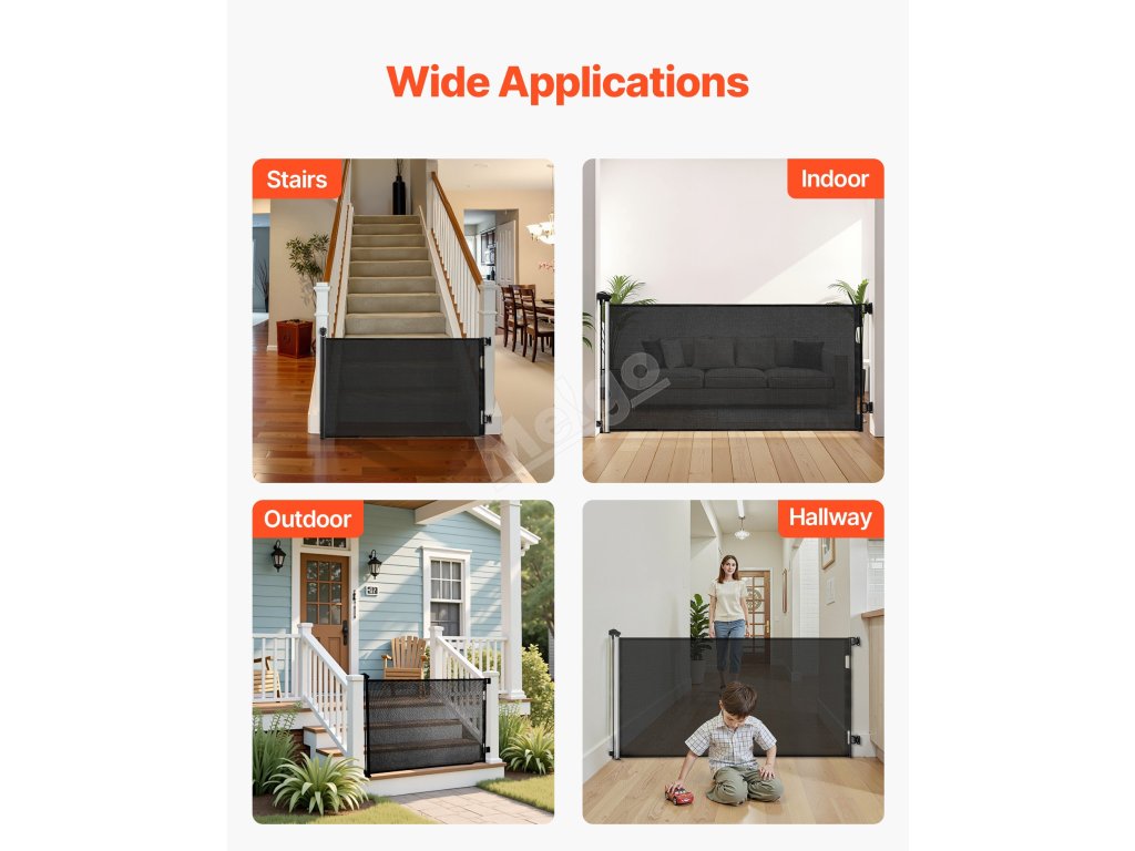 Roztahovací síťová zábrana 1850×980 mm s bezpečnostním zámkem černá