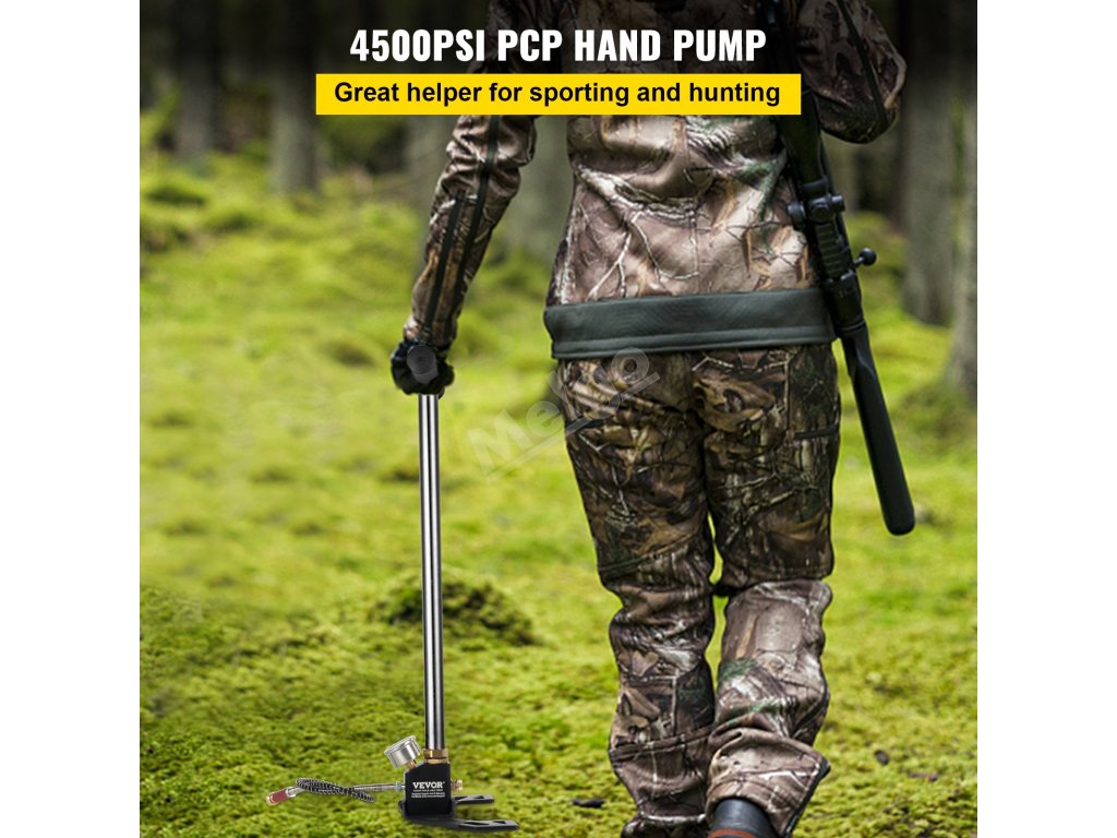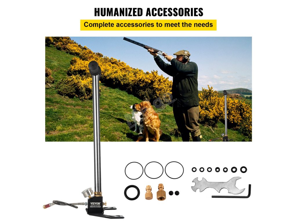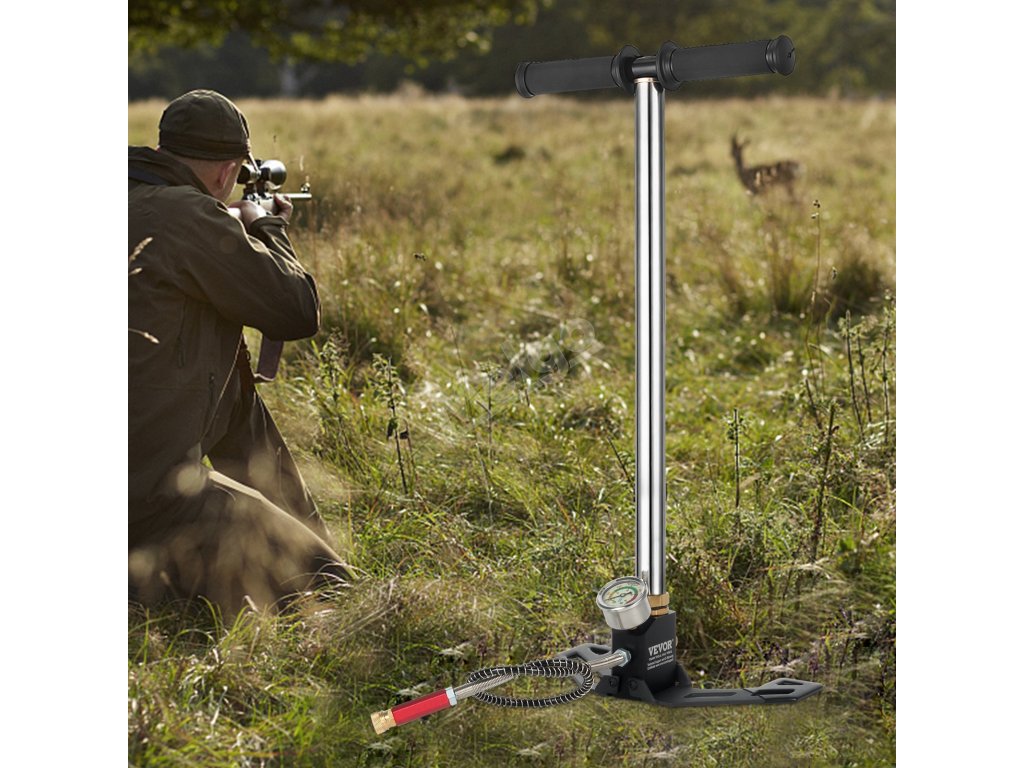 Tato třístupňová ruční pumpa vytváří tlak vzduchu až 4500 psi, čímž plynule a velmi efektivně plní vaše vzduchové pistole PCP a šetří 30 % vaší námahy.