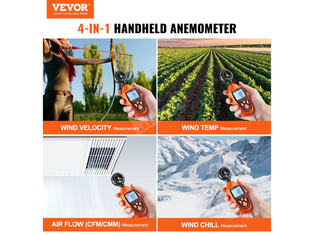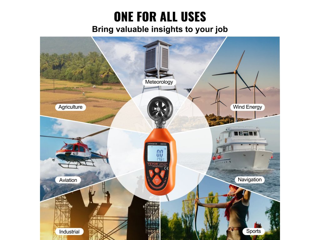 Prozkoumejte přírodu, zvládněte každý vánek s naším anemometrem! Náš měřič rychlosti větru 4 v 1 měří rychlost větru, teplotu větru, proudění vzduchu a chlad větru. Vodotěsnost IP44 (kromě lopatkové jednotky), 6 jednotek rychlosti větru, LED podsvícený displej, to vše pro vás má! Jste připraveni pozvednout své zážitky z měření větru?