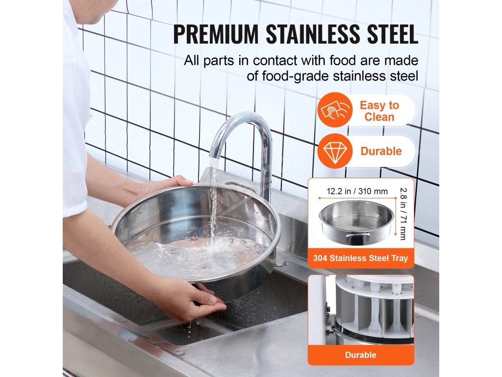 Tento dělič těsta je vyroben z robustní nerezové oceli SUS304 a je odolný proti korozi a opotřebení. Všechny části, které přicházejí do styku s potravinami, jsou vyrobeny z potravinářské nerezové oceli, což zajišťuje bezpečnost a trvanlivost.
