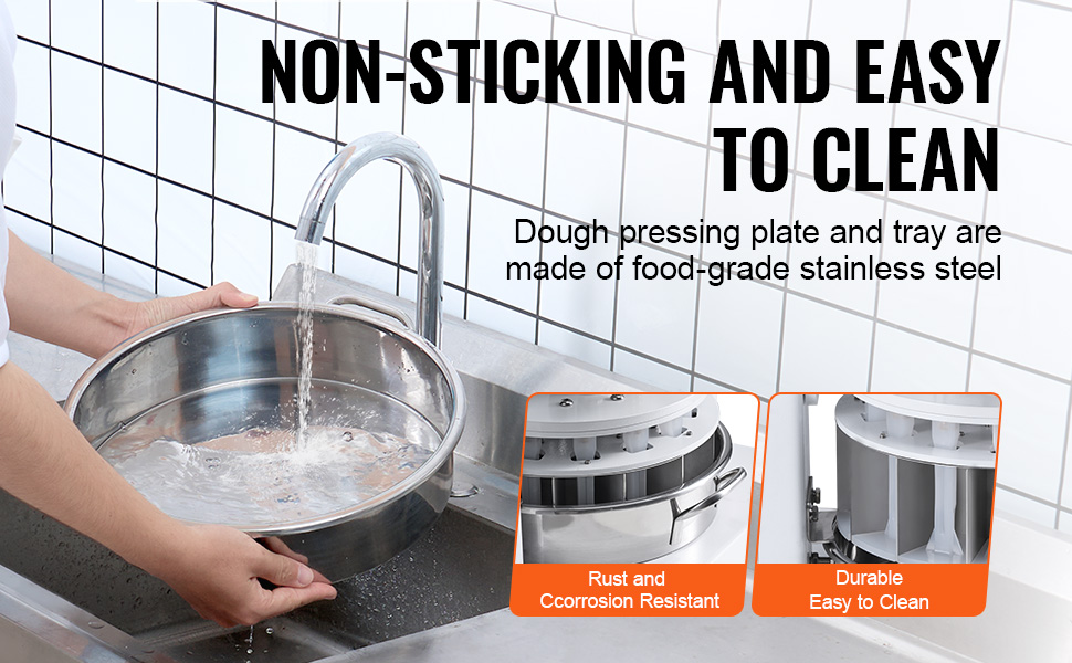 Tento dělič těsta je vyroben z robustní nerezové oceli SUS304 a je odolný proti korozi a opotřebení. Všechny části, které přicházejí do styku s potravinami, jsou vyrobeny z potravinářské nerezové oceli, což zajišťuje bezpečnost a trvanlivost.