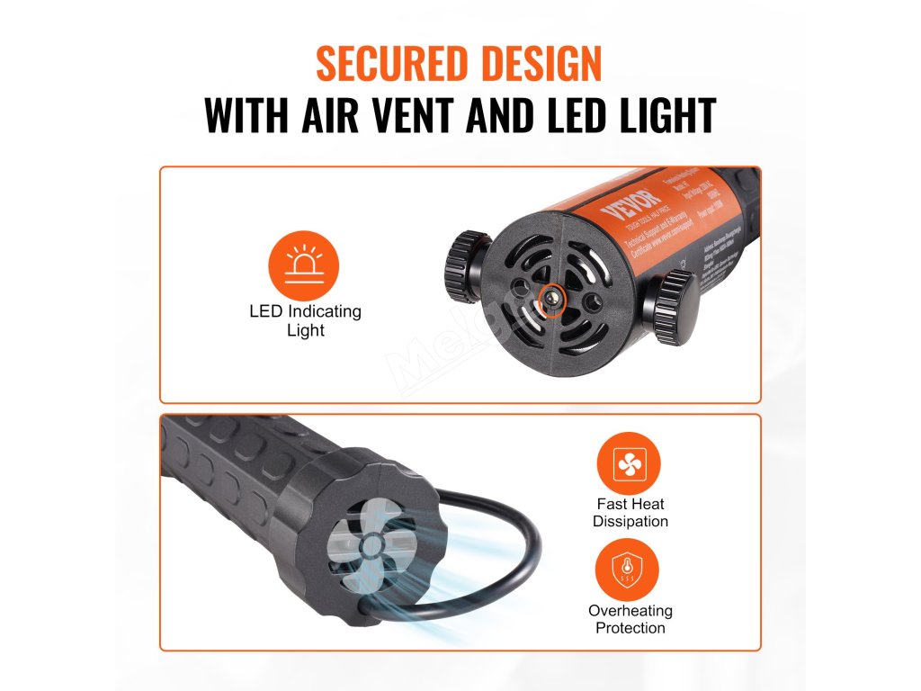 Díky vestavěnému chladicímu ventilátoru zůstává indukční ohřívač chladný a zabraňuje přehřátí, čímž chrání své součásti. LED světlo zajišťuje viditelnost za zhoršených světelných podmínek, zatímco ergonomická protiskluzová rukojeť poskytuje bezpečný úchop, takže se nářadí pohodlně a snadno používá.