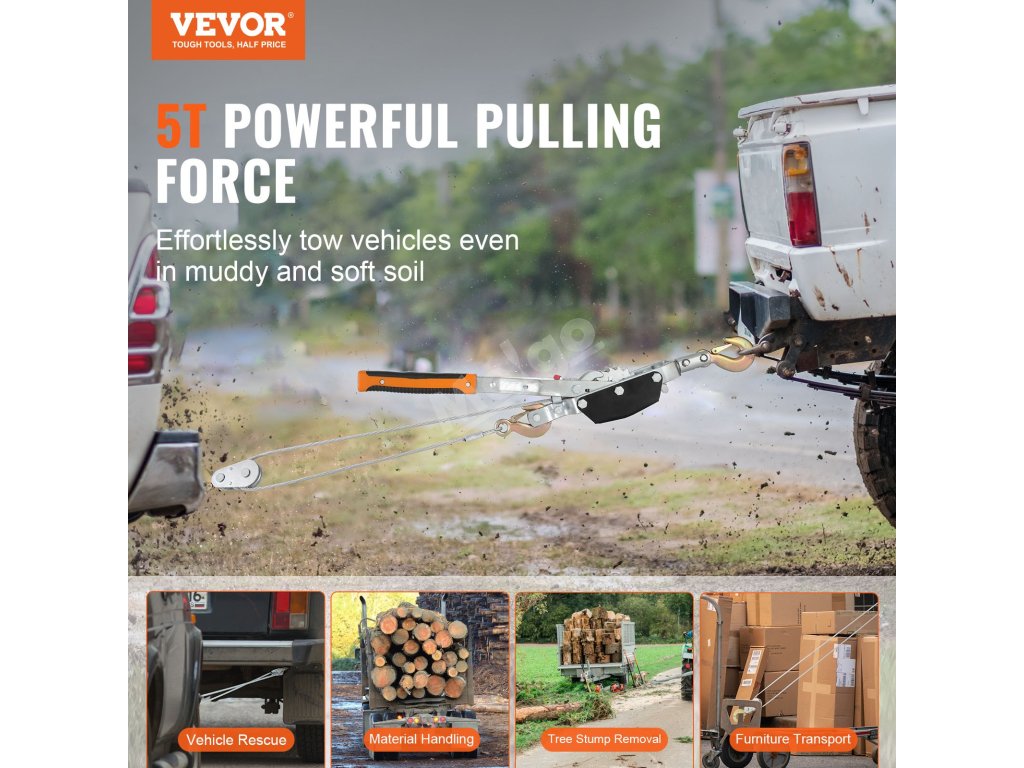 Potřebujete pořádnou tažnou sílu? Výkonný traktor VEVOR vám pomůže. Díky své pevné konstrukci s jednodílnou převodovkou se pohybuje bez námahy a zajistí vše, co přesouváte. Ideální pro vyprošťování vozidel, stěhování materiálů, odstraňování pařezů nebo stěhování nábytku - vaše naléhavé potřeby máme vyřešeny!