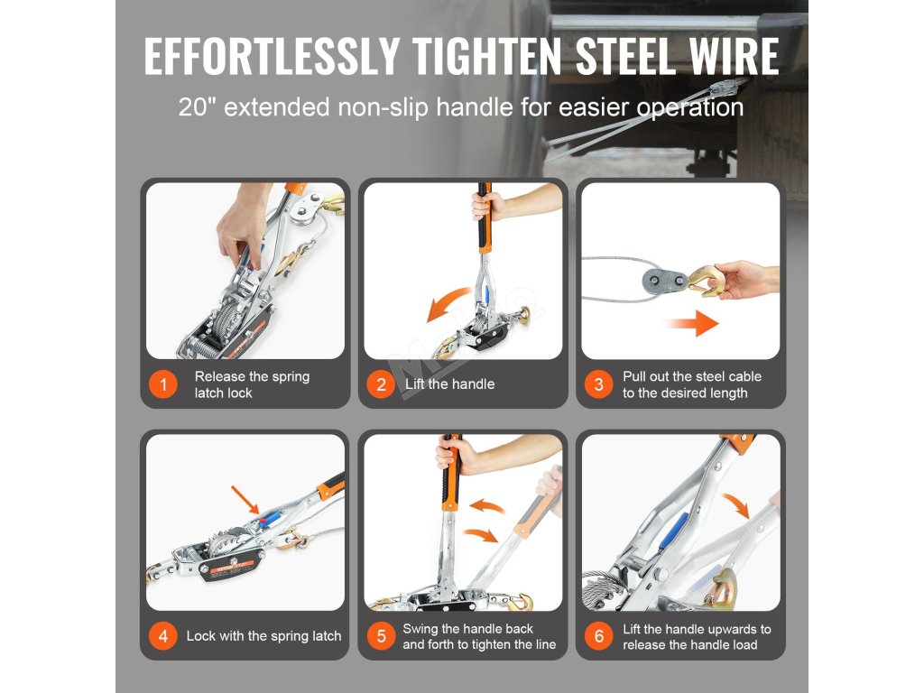 Tento ráčnový stahovák se dodává s lanem z uhlíkové oceli průmyslové kvality. Je navrženo pro zvýšenou trvanlivost a odolnost proti opotřebení - což znamená, že budete tahat a přenášet po mnoho let.
