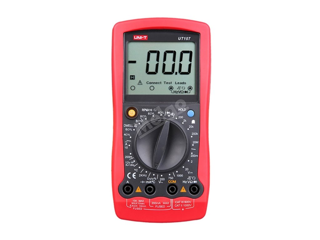UNI-T UT107 je ruční digitální multimetr určený speciálně pro použití v automobilových dílnách a pro mechaniky zabývající se diagnostikou elektrických zařízení vozidel. Nabízí širokou škálu měřicích funkcí pro kontrolu stavu zapalovacích systémů, napájecích zdrojů, baterií a mnoha dalších systémových komponent. Je to spolehlivý nástroj pro práci v terénu i v dílně - odolný, přesný a snadno použitelný.
