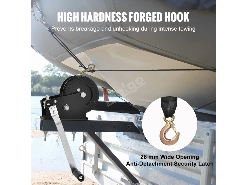 Náš ruční klikový naviják je vybaven silným, jednodílným kovaným hákem, který je dostatečně odolný i pro ta nejtěžší břemena. Jeho široký otvor je připraven i na ta nejtěžší lana nebo háky přívěsu a díky samosvorné bezpečnostní západce zůstane váš náklad v bezpečí.