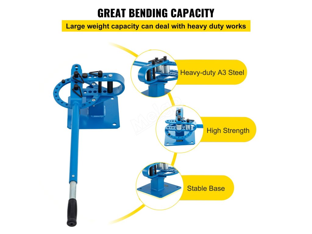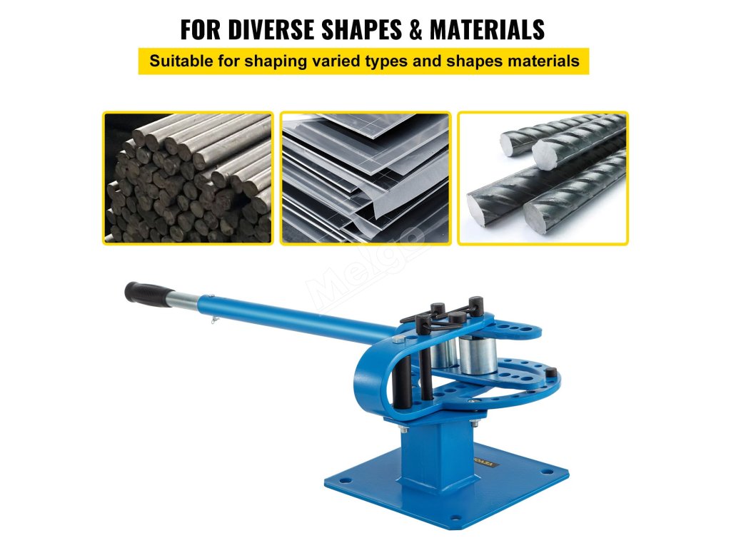 Tato ohýbačka kovů je kompatibilní s nerezovou ocelí, ocelí atd. Může ohýbat různé tvary materiálu, například plochou ocel a plnou tyč.