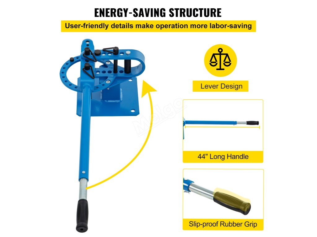 teleskopická rukojeť o délce 44" umožňuje lepší pákový efekt a usnadňuje ohýbání. Výsuvná páka zvýší tlak, který vyvíjíte na kov, a ušetří více práce.