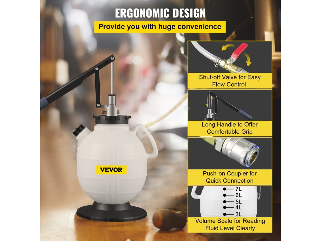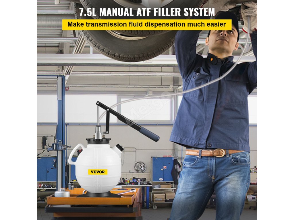 Náš odvzdušňovač převodové kapaliny obsahuje silnou plastovou nádrž a má velký objem 7,5 l. Je navržen tak, aby vám pomohl snadněji a rychleji dávkovat převodovou kapalinu bez nepořádku.