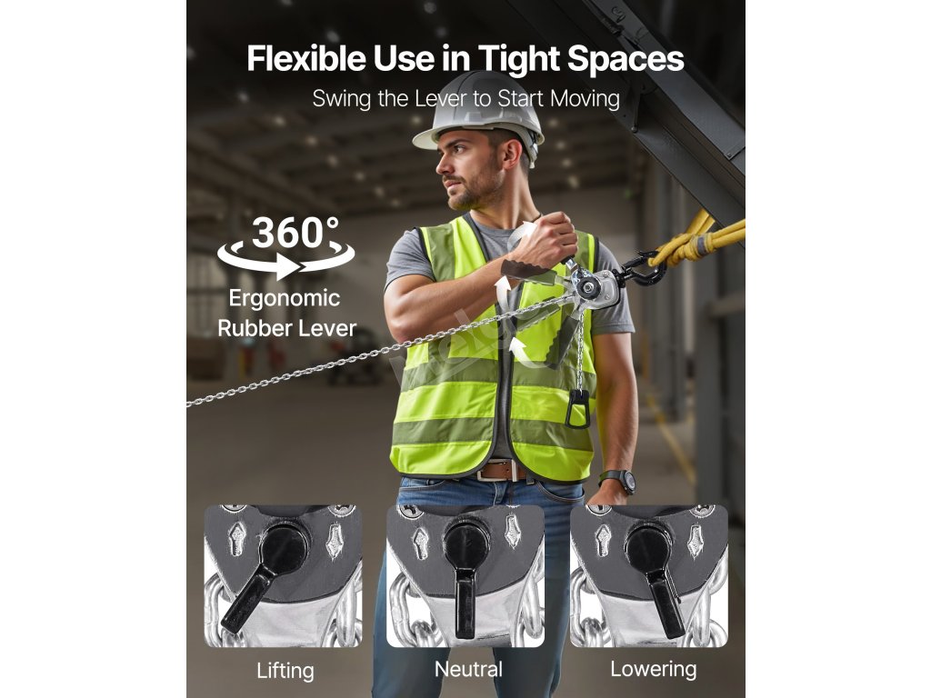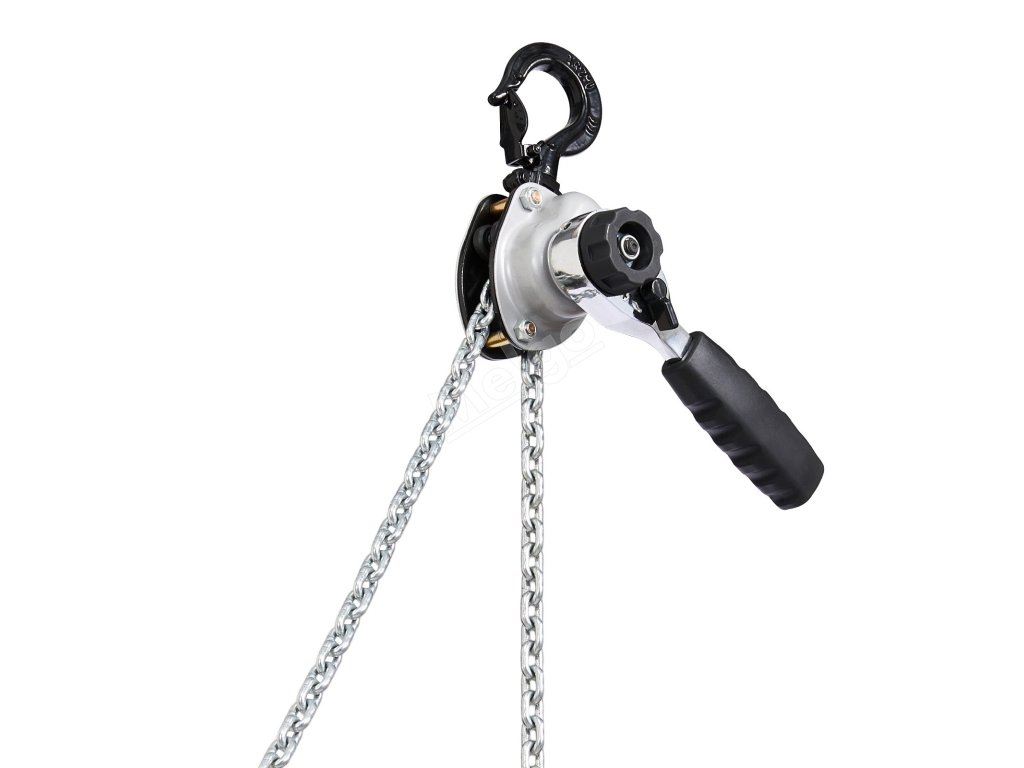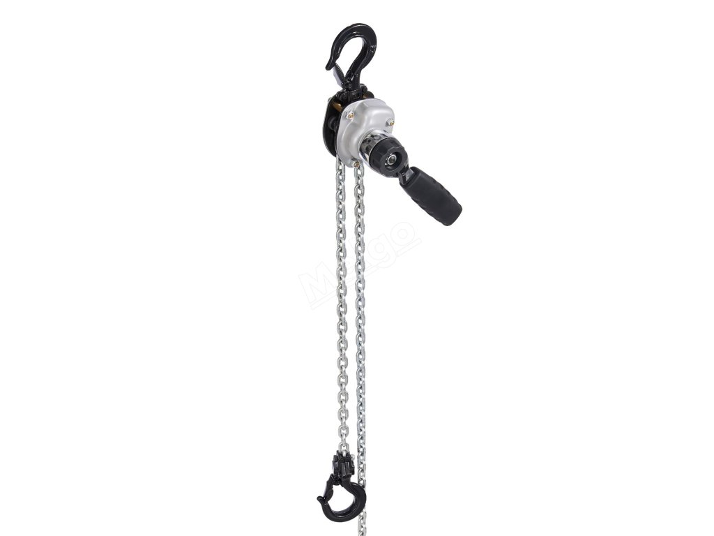 Tento ruční řetězový zvedák G80 s pozinkovaným řetězem zvládne náročné úkoly, jako je přemísťování klád, strojů nebo ocelových nosníků. Dvojitá ráčnová brzda typu Weston a vedená drážka řetězu zajišťují hladký a bezpečný provoz.