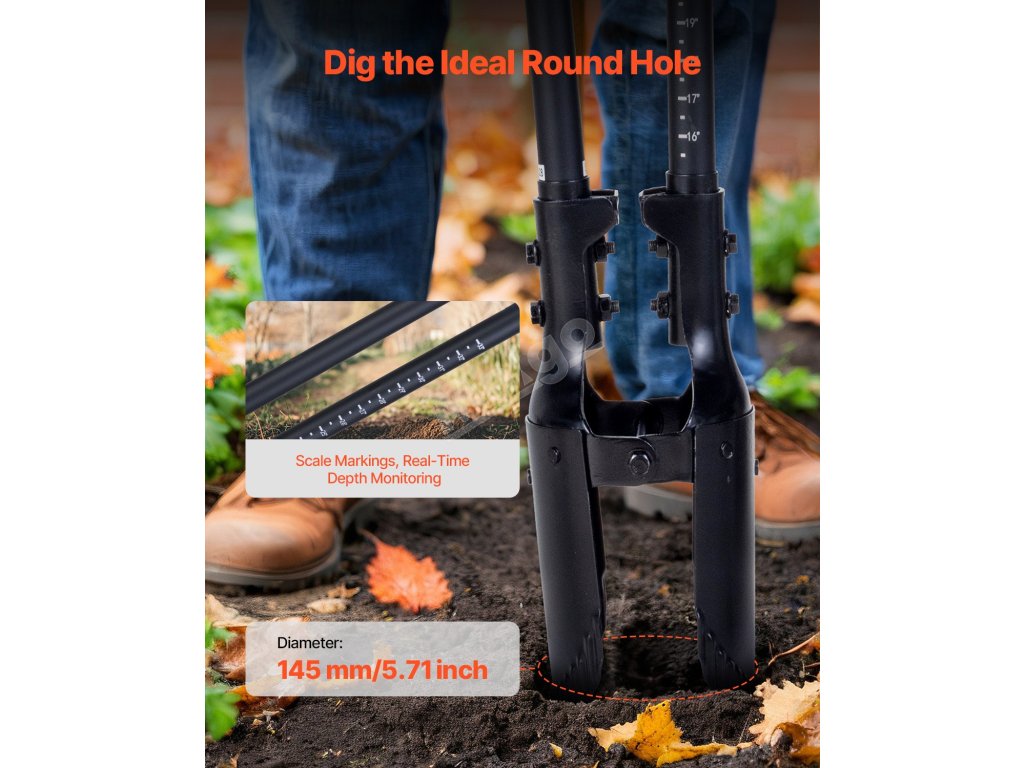 Toto rypadlo je ideální pro zahradnické a zemědělské práce, snadno vyhloubí kulaté díry o průměru 5,71 mm. Sklolaminátová rukojeť a vlnovitá čepel se prořezávají tvrdou půdou, zatímco délka 57,48"/1460 mm snižuje ohýbání. Je lehký, přenosný a připravený k použití a zvyšuje efektivitu práce.