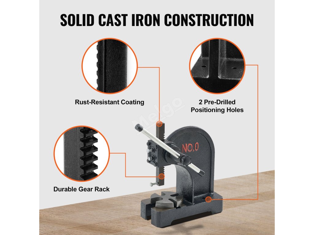 Stolní armoxový lis je vyroben z vybrané kvalitní litiny, takže při dlouhodobém lisování nedochází snadno k praskání a deformaci. Povrch je opatřen antikorozní vrstvou, díky níž je odolný proti korozi a rzi.