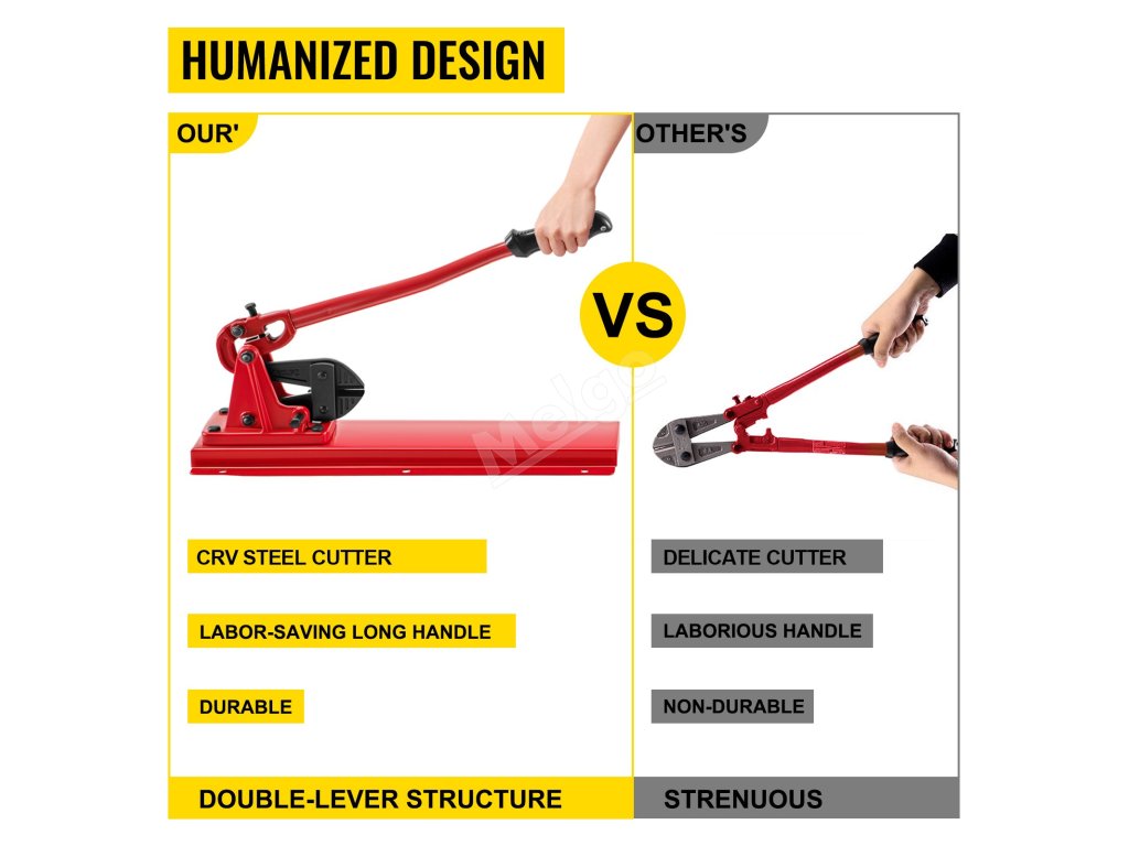 Stolní ruční nástroj používá materiál formy CRV a jeho tvrdost dosahuje HRC 35-45°. Čepel je zesílená, pevná a odolná. Stěna trubky je zesílená, takže nosnost je vynikající.