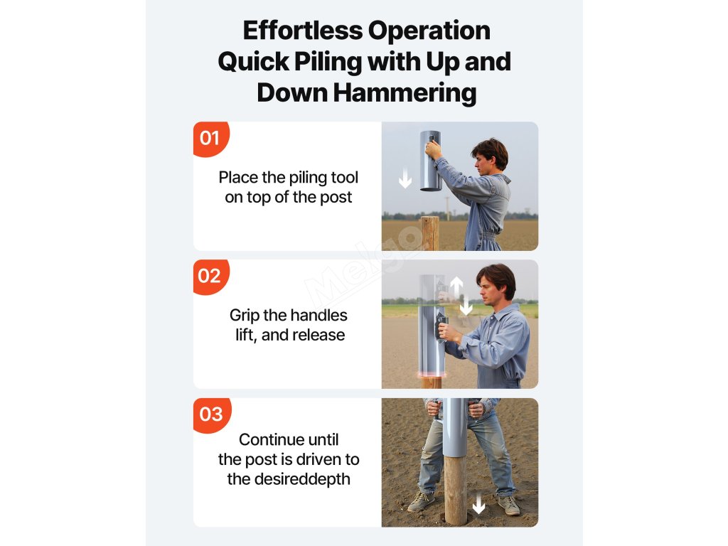 Tento nástroj je navržen tak, aby snižoval fyzickou zátěž a eliminoval nutnost kopat nebo mávat těžkým kladivem. Snadno jej může používat jedna osoba, aniž by to způsobilo nepohodlí zad nebo rukou.