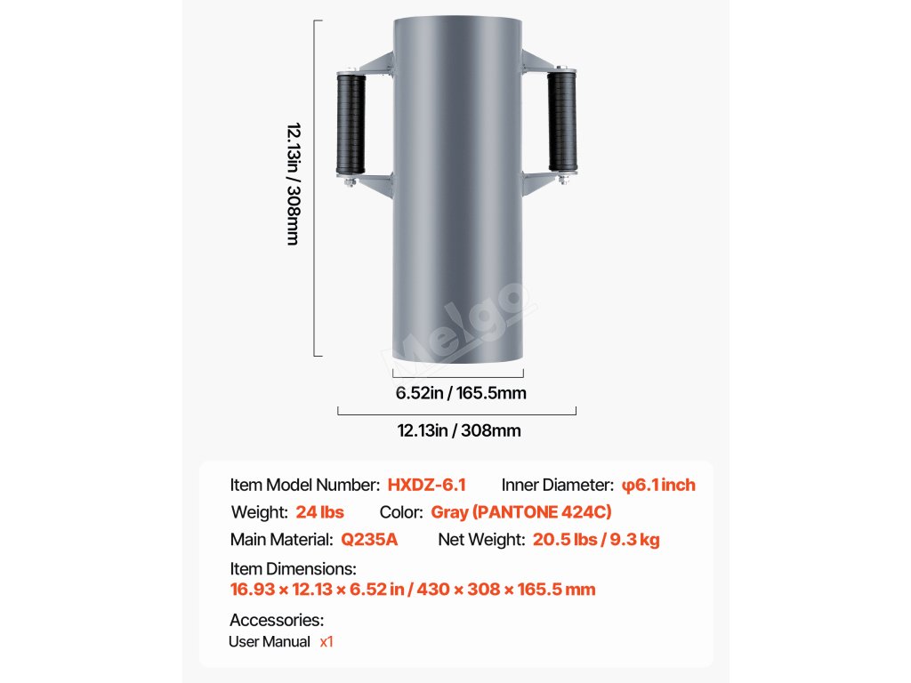 Ruční udírač na t-sloupy s rukojeťmi, vnitřní průměr do 6.1in