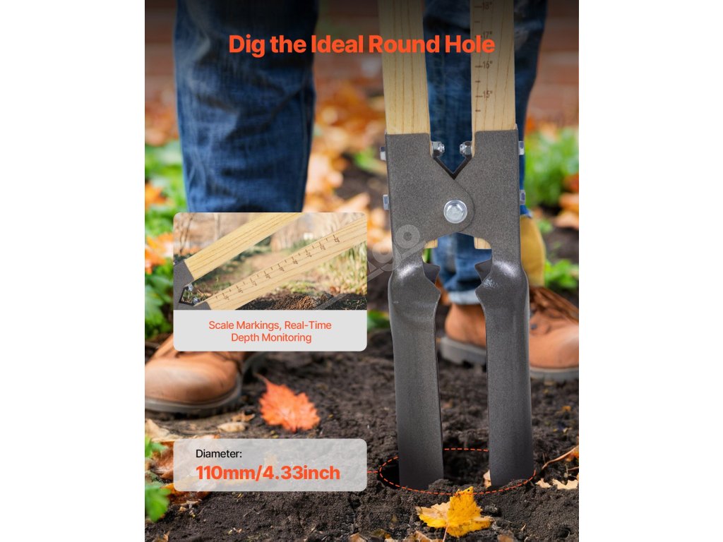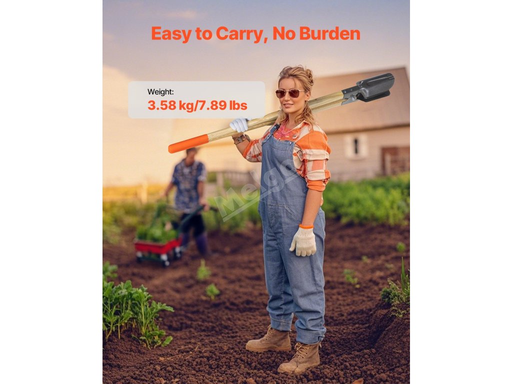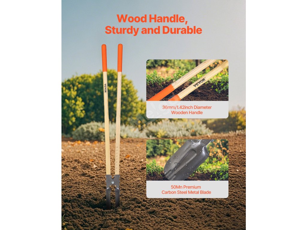 Toto rypadlo je ideální pro zahradnické a zemědělské práce, snadno vyhloubí kulaté díry o průměru 4,33 mm. Dřevěná rukojeť a kovová čepel 50 Mn prorazí tvrdou půdu, zatímco délka 57,48"/1460 mm snižuje ohýbání. Je lehký, přenosný a připravený k použití, což zvyšuje efektivitu práce.