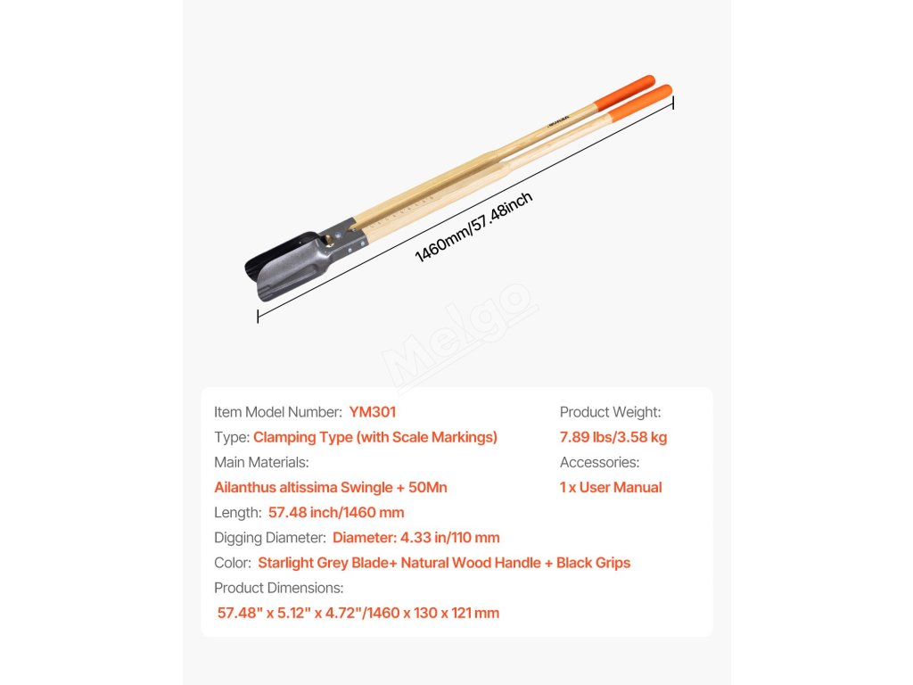 Díky celkové délce 57,48 palce/1460 mm omezuje náš ruční bagr časté ohýbání. Dvouvrstvá konopná koncovka zvyšuje pohodlí při uchopení a zřetelné značení stupnice vám pomůže přesně změřit hloubku jámy při kopání.