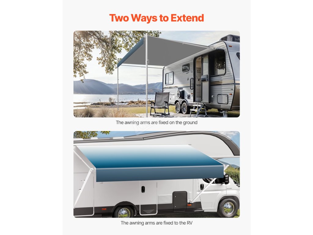Nabízíme odolnou markýzu pro obytné vozy s vylepšenou 18oz čtyřvrstvou PVC vinylovou tkaninou, která je navržena tak, aby odolala proměnlivému počasí. Zesílený rám z hliníkové slitiny je vodotěsný, odolný proti korozi a zajišťuje dlouhodobou stabilitu a trvanlivost.