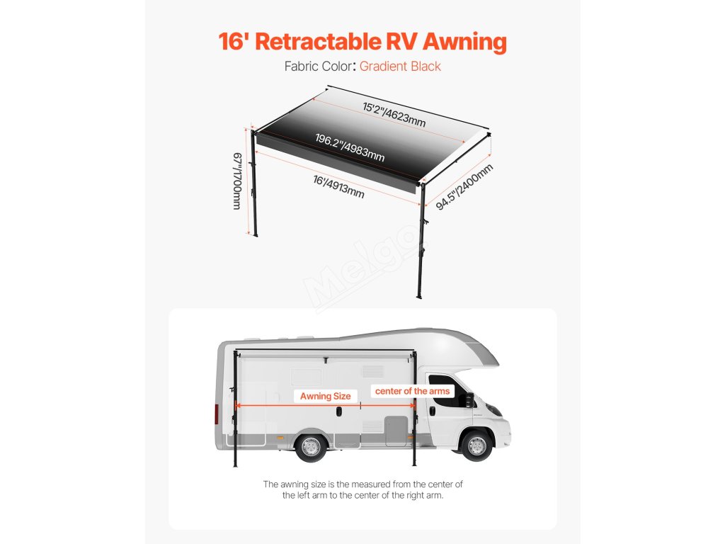 Ruční výsuvná markýza pro karavany komplet 16' hliníkový rám černá