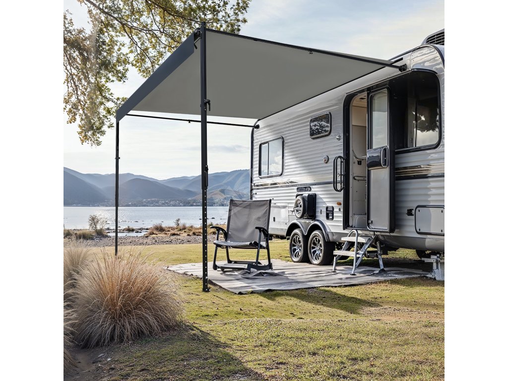 Nabízíme odolnou markýzu pro obytné vozy s vylepšenou 18oz čtyřvrstvou PVC vinylovou tkaninou, která je navržena tak, aby odolala proměnlivému počasí. Zesílený rám z hliníkové slitiny je vodotěsný, odolný proti korozi a zajišťuje dlouhodobou stabilitu a trvanlivost.