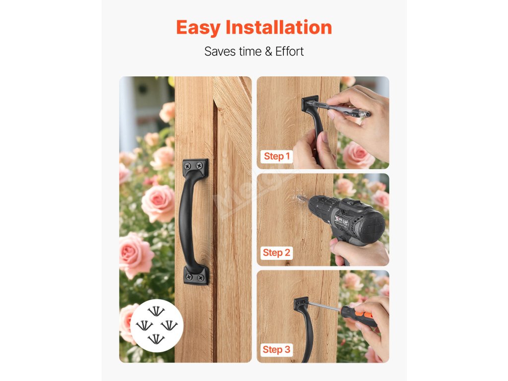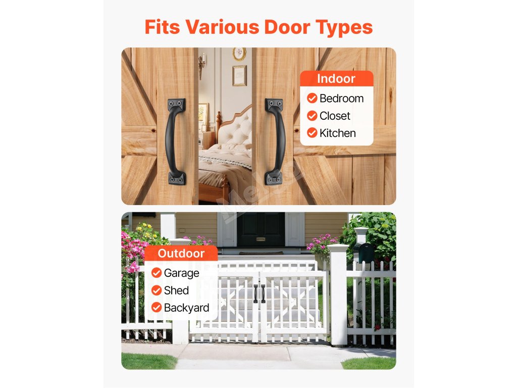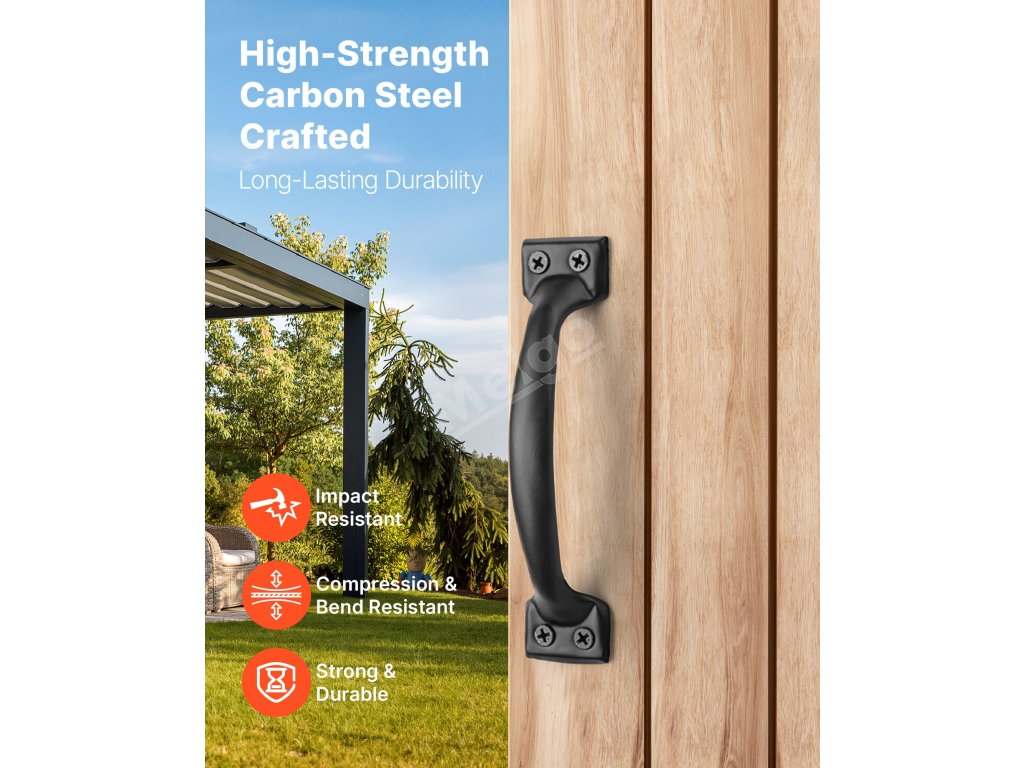 Klika na vrata od plotu, vrata od stodoly, kůlny na nářadí, zahradní brány a dveře na terasu se snadno přizpůsobí různým typům vrat.