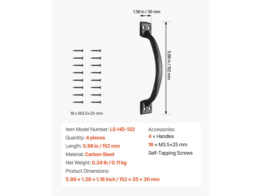 Rukojeti na posuvné dveře 4 ks 152 mm z uhlíkové oceli, proti korozi