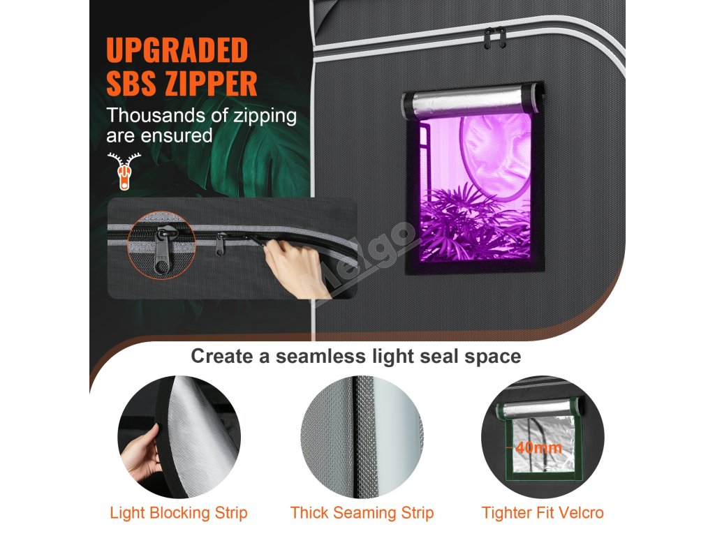 Táto funkcia je užitočná najmä pre začiatočníkov. Umožňuje vám sledovať vaše rastliny bez toho, aby ste museli stan otvárať. Pozorovacie okienko sa ľahko používa a čistí. Ide o premyslený doplnok konštrukcie pestovateľského stanu VEVOR 4x4. Môžete sledovať všetky svoje rastliny bez toho, aby ste ich rušili. Znamená to, že monitorovanie vlastných rastlín je jednoduchšie ako udržiavanie izbovej záhrady.