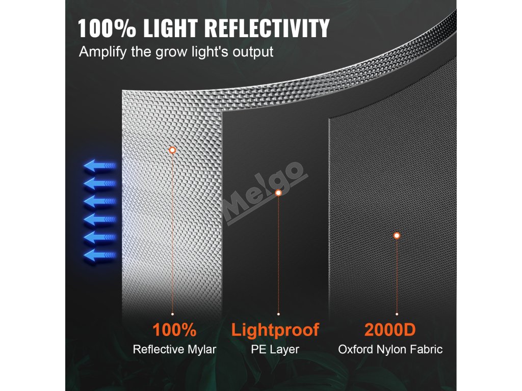 Vysoko reflexný hydroponický pestovateľský stan z materiálu 2000D Mylar pre zvýšenú účinnosť svetla