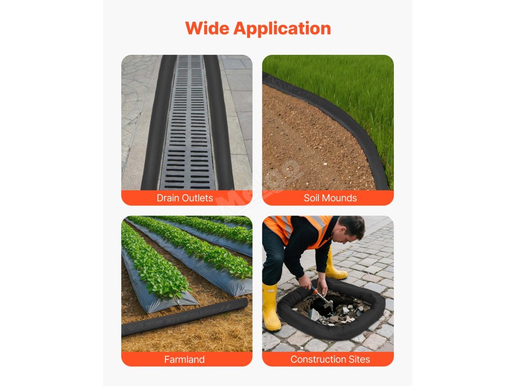 Účinná filtrační ponožka o délce 10FT zachycuje sedimenty, listí a nečistoty, chrání odvodňovací systémy a zabraňuje erozi půdy. Ideální pro dešťovou kanalizaci, staveniště a zemědělskou půdu. Snadno se používá, je odolný a navržený tak, aby blokoval odtok a zároveň umožňoval průtok vody pro účinnou filtraci.