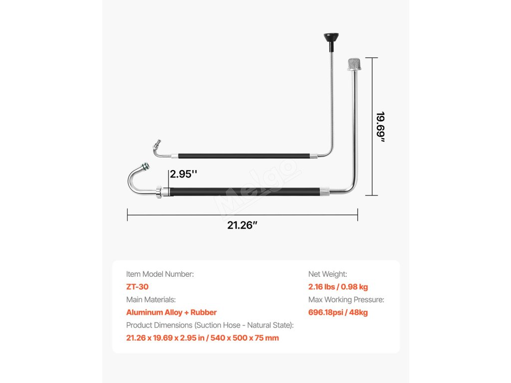 Sací hadice a zpětná linka hliník a guma pro airless stroje