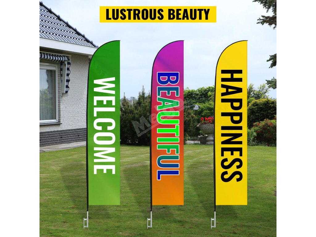 Personalizovaná péřová vlajka se široce používá při zahajovacích ceremoniálech, reklamních vlajkách, představeních obchodů, vývěsních štítech, vlajkách se sloganem, vlajkách se zprávou atd.