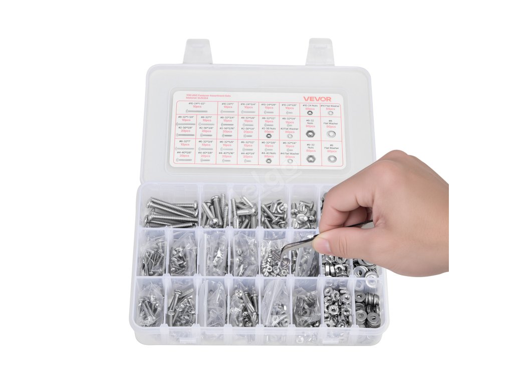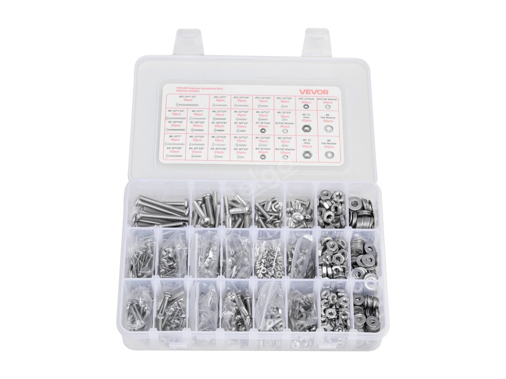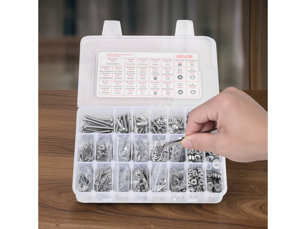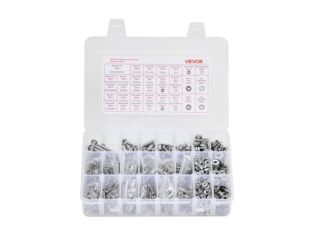 Sada 1110 šroubů, matic a podložek nerez 10-24/8-32/2-56/6-32/4-40
