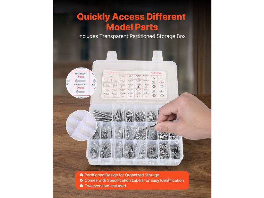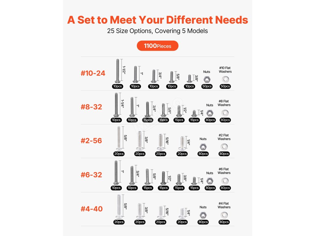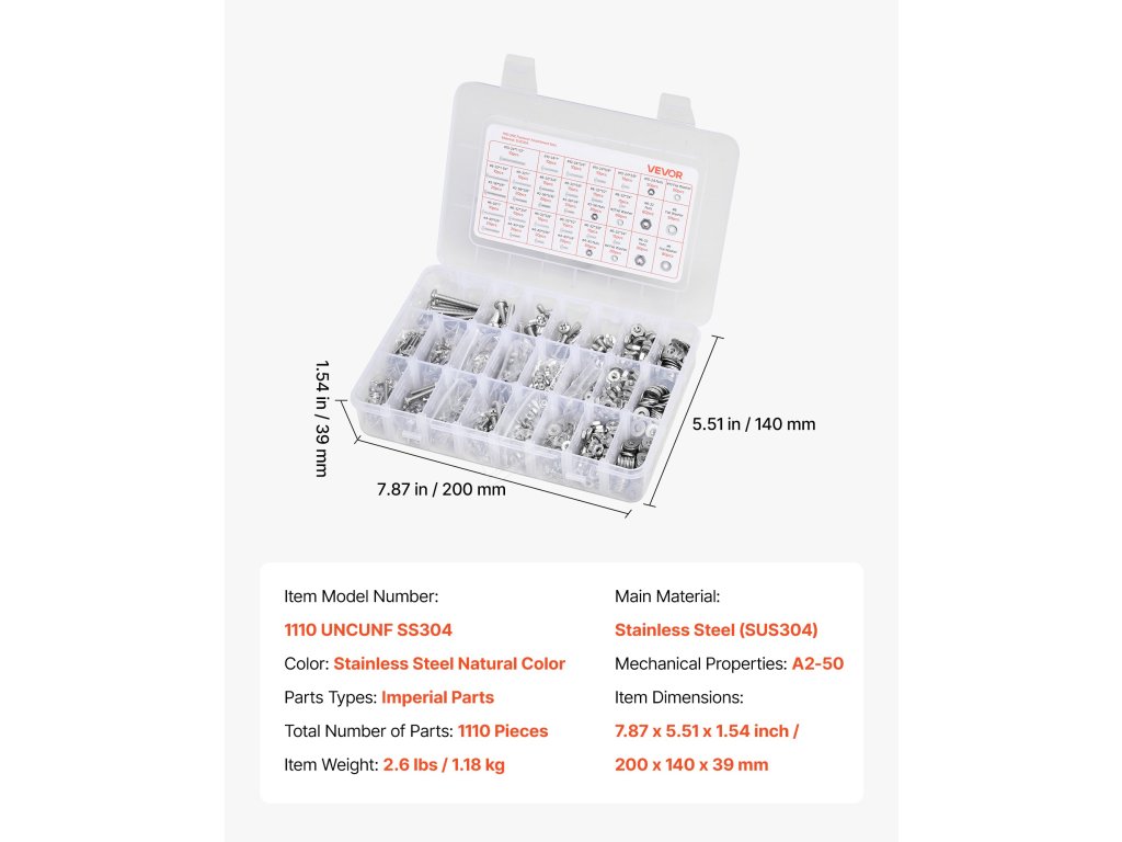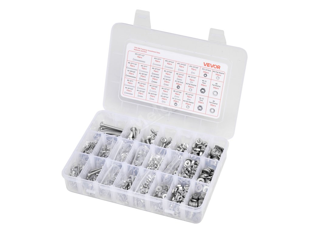 Sada 1110 šroubů, matic a podložek nerez 10-24/8-32/2-56/6-32/4-40
