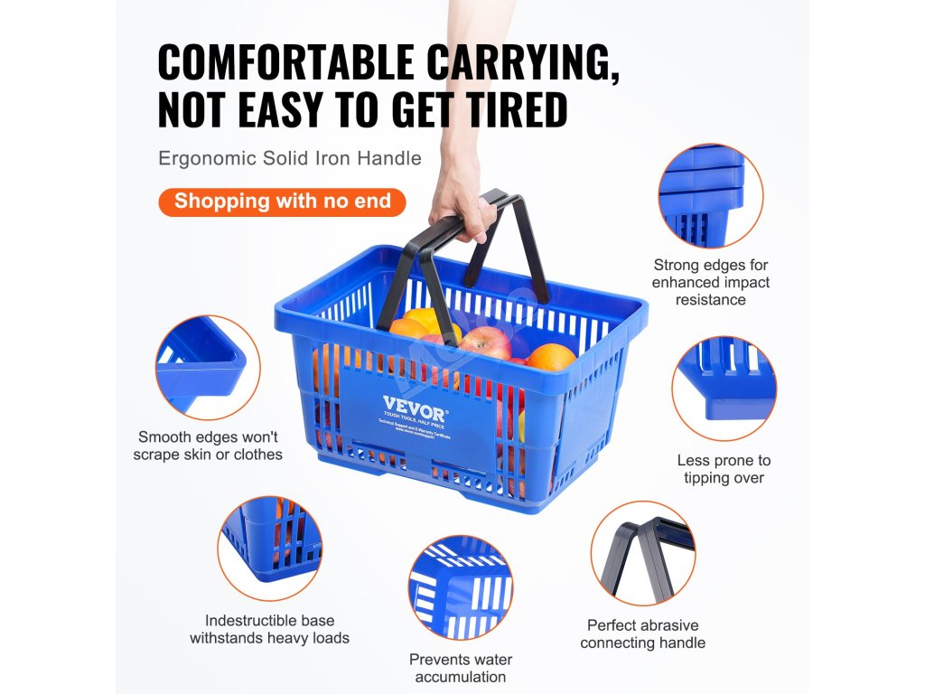 Rozlučte se s problémy při nakupování s ručním nákupním košíkem VEVOR! Je navržen pro vaše potřeby a dostatečně prostorný, aby zvládl týdenní nákup pro celou rodinu. Už žádné žonglování s taškami nebo starosti s místem - s naším košíkem je vše vyřešeno!
