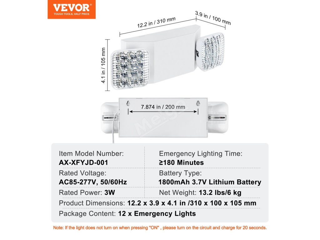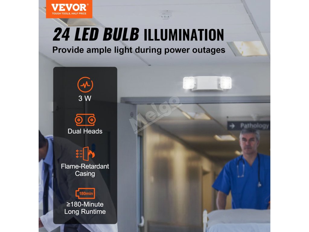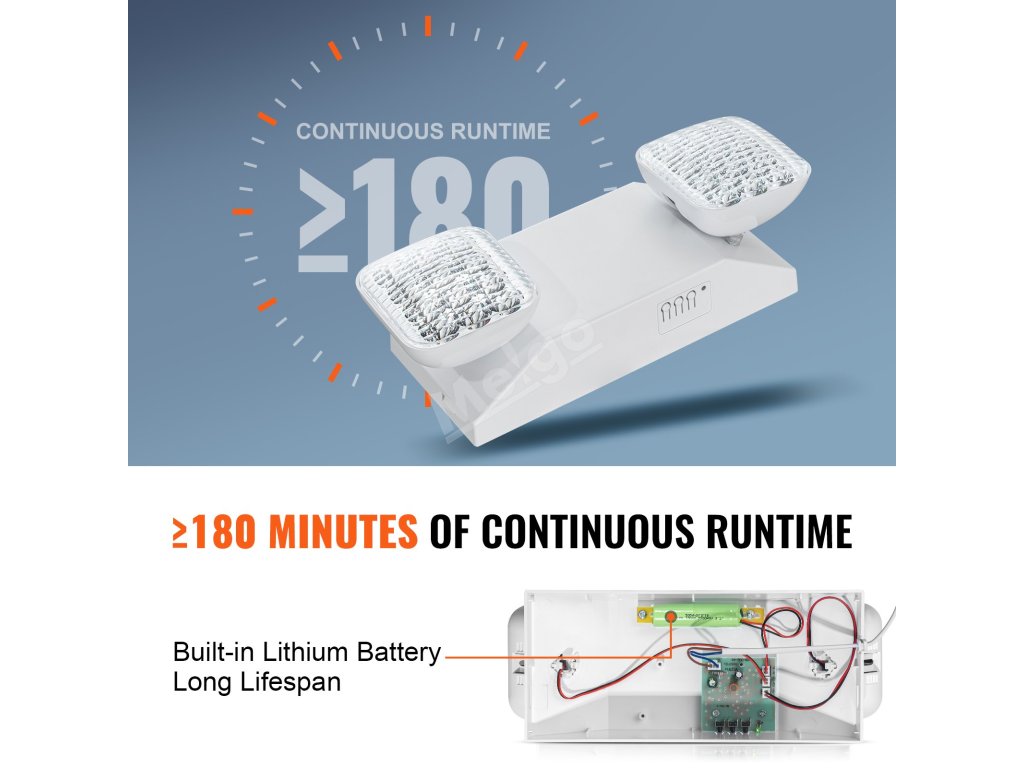 Naše 3W nouzová LED světla se dvěma hlavami, 12 LED čipy na hlavu a hlavami nastavitelnými v úhlu 90° zajišťují účinnou evakuaci při výpadcích proudu, požárech, bouřkách apod. Díky dobíjecí baterii s kapacitou 1800 mAh zůstaňte připraveni a spolehlivě osvětleni po dobu více než 180 minut nepřetržitého svícení!