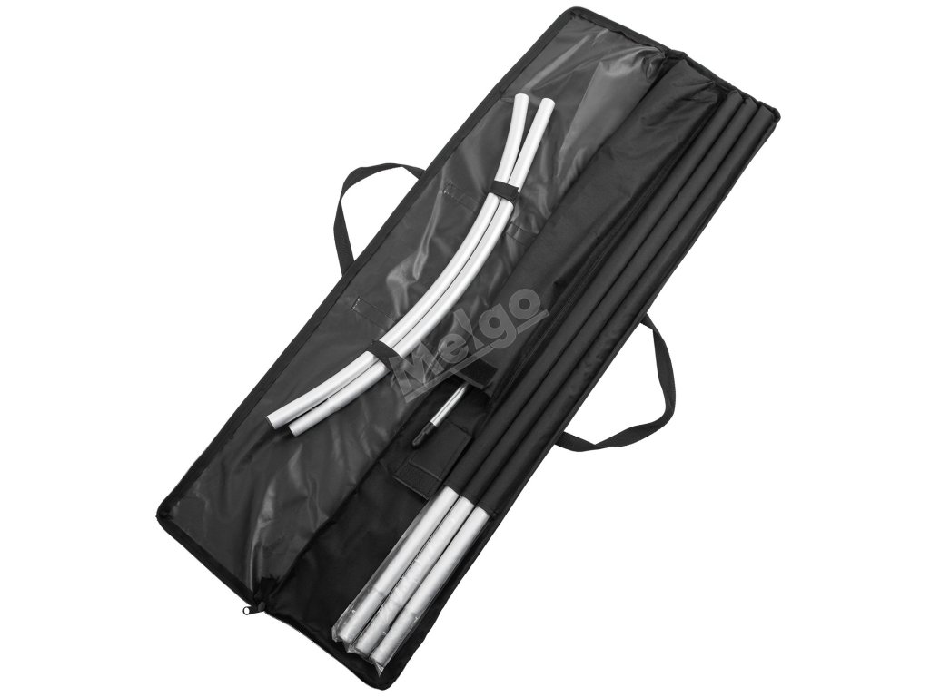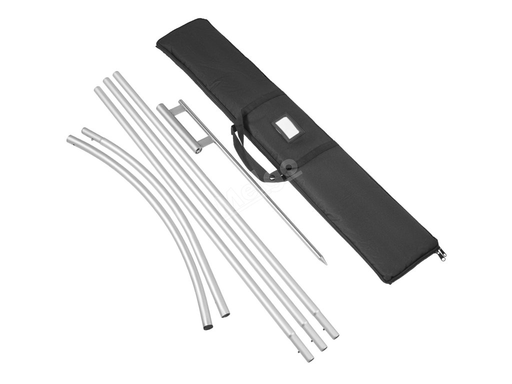 Části stožáru jsou zabaleny v odolném sáčku. Když se nepoužívají, je možné je pohodlně uložit. A tašku si můžete vzít s sebou všude tam, kde je vlajka potřeba.