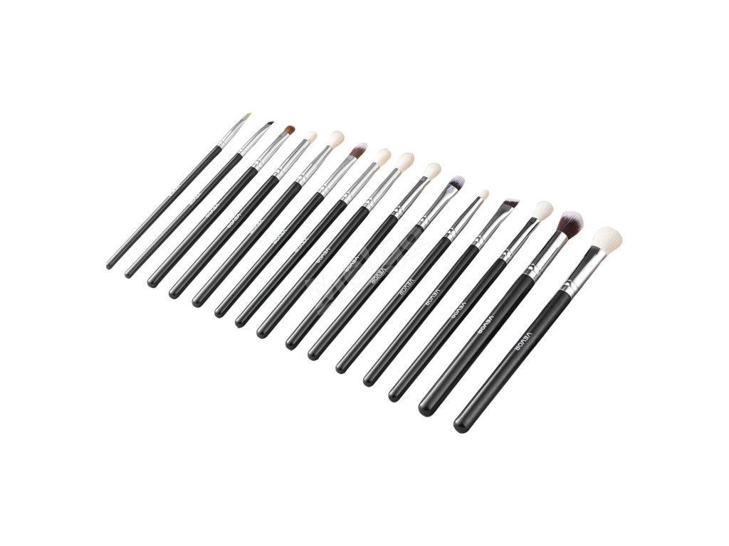 Sada 15 kosmetických štětců měkké syntetické štětiny, dřevěná rukojeť