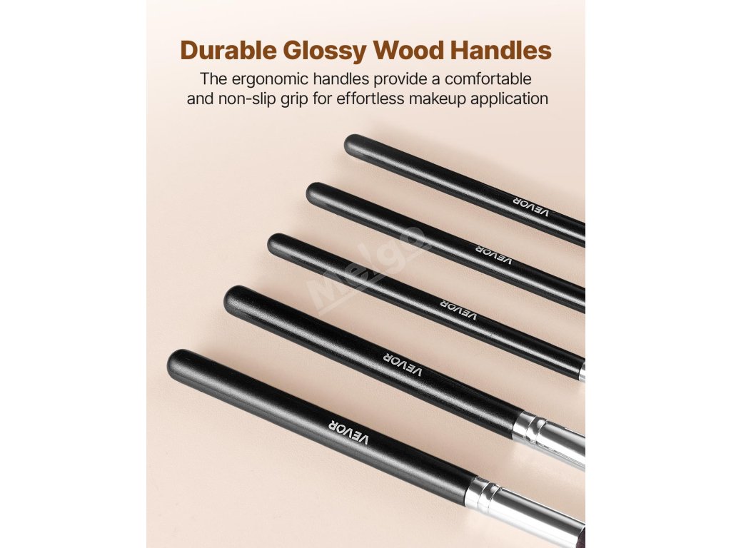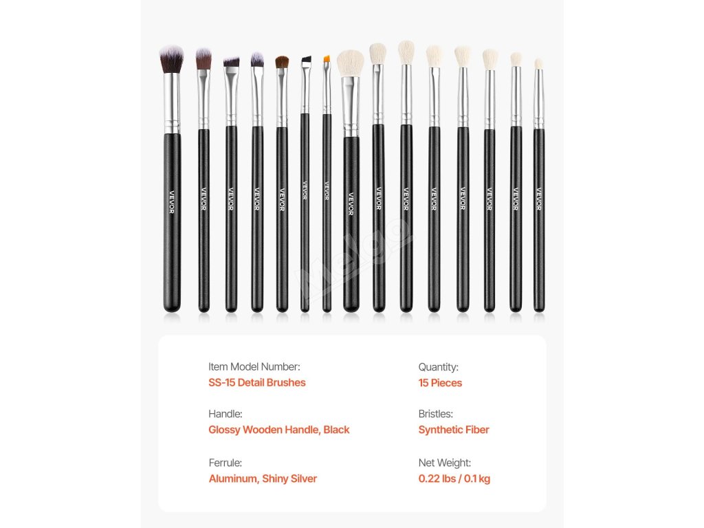 15dílná profesionální sada štětců na make-up VEVOR kombinuje extrémně měkké štětiny, ergonomické dřevěné rukojeti a hliníkové hroty pro profesionální líčení. Zajišťuje hladké a přesné nanášení od podkladové báze až po detailní roztírání a pomáhá vám snadno vytvořit bezchybnou, přirozenou krásu.