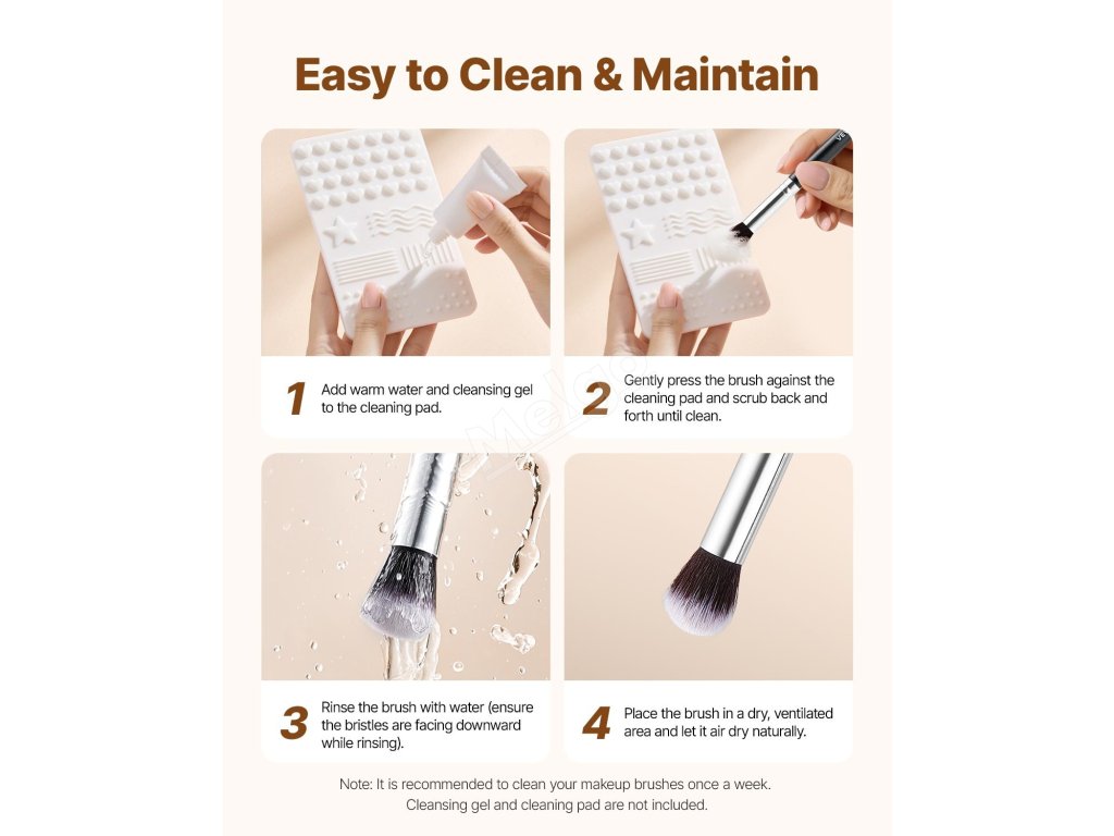 Tyto štětce na roztírání podkladové báze a očních stínů jsou ideální pro začátečníky i profesionály. Každý štětec s vynikající přilnavostí pudru, mimořádně měkkými štětinami a schopností vytvářet barvu hladce klouže a zajišťuje bezproblémové roztírání a přirozeně zářivý vzhled.